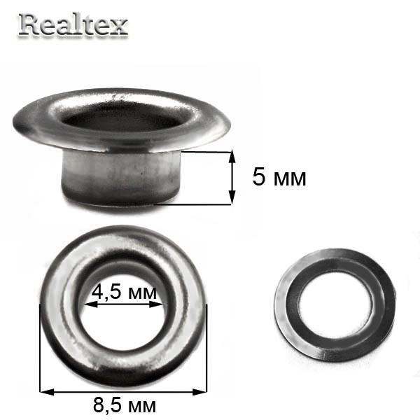 1уп.-1000штЛюверсы № 2 (4мм) с кольцами цв.чёрный никель - изделие обладает оптимальным сочетанием цены и качества, приобрести которое можно оптом и в розницу с доставкой по всей России в интернет-магазине Realtex