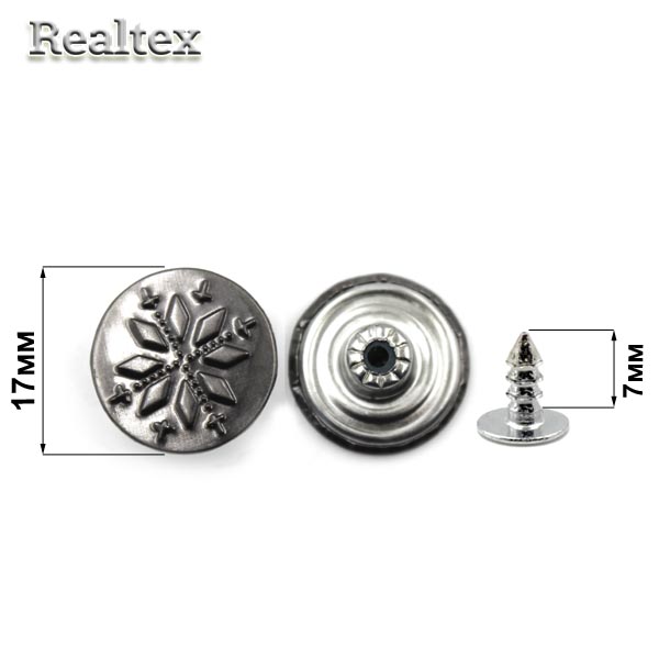 Пуговица джинсовая 17мм RS "Цветок" цв.черный никель - изделие обладает оптимальным сочетанием цены и качества, приобрести которое можно оптом и в розницу с доставкой по всей России в интернет-магазине Realtex