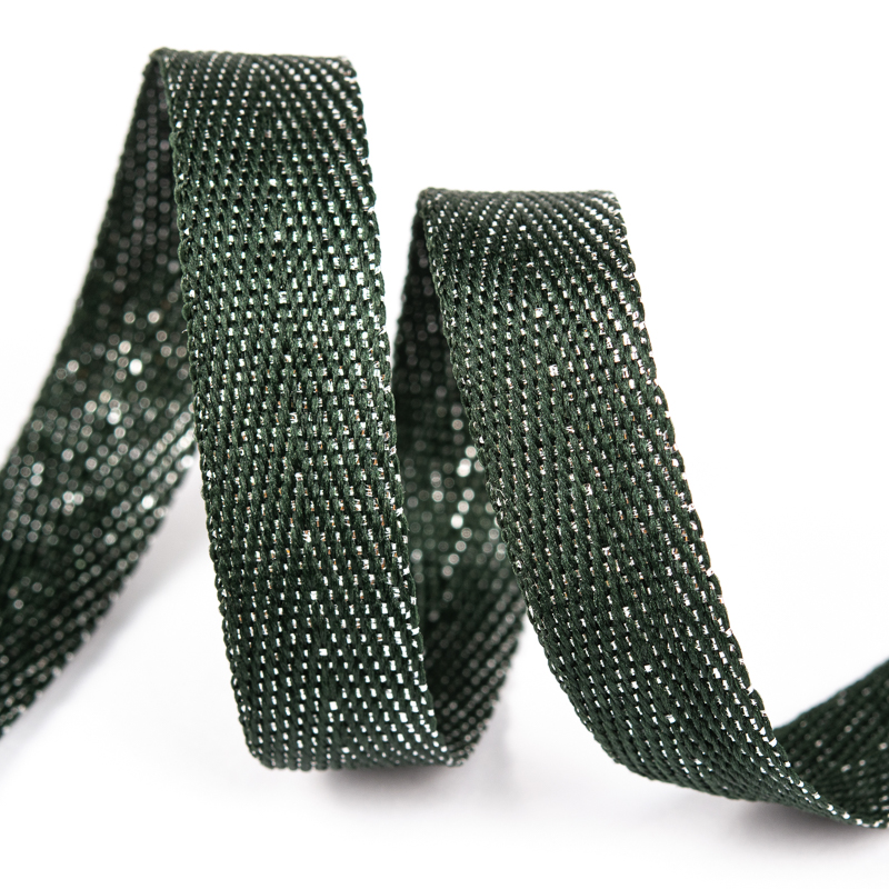 - Тесьма киперная металлизированная 90370 13мм цв.т.зелёный/серебро