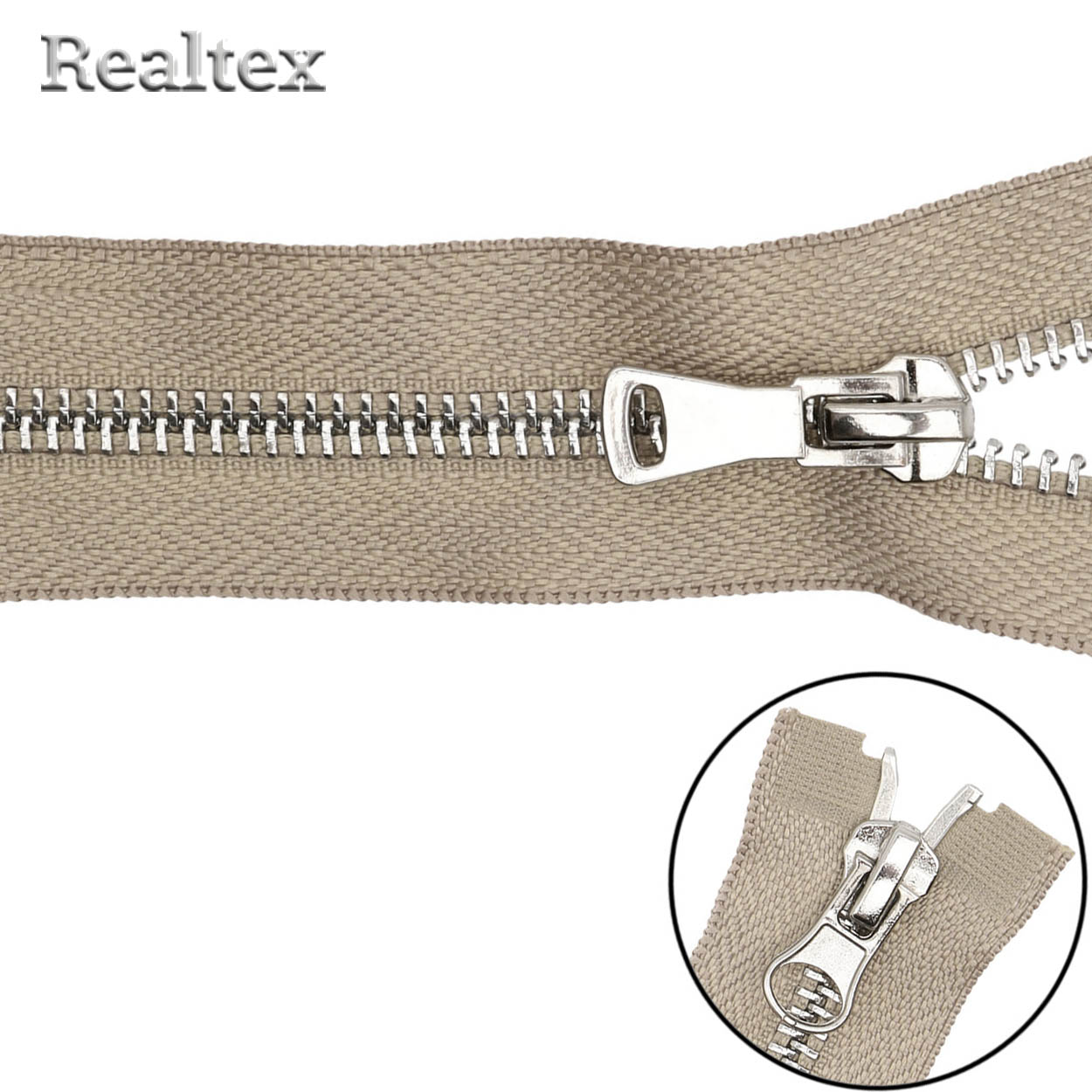 Молния металл Т.5 2замка 85см разъемная цв.никель/128 бежево-серый - изделие обладает оптимальным сочетанием цены и качества, приобрести которое можно оптом и в розницу с доставкой по всей России в интернет-магазине Realtex