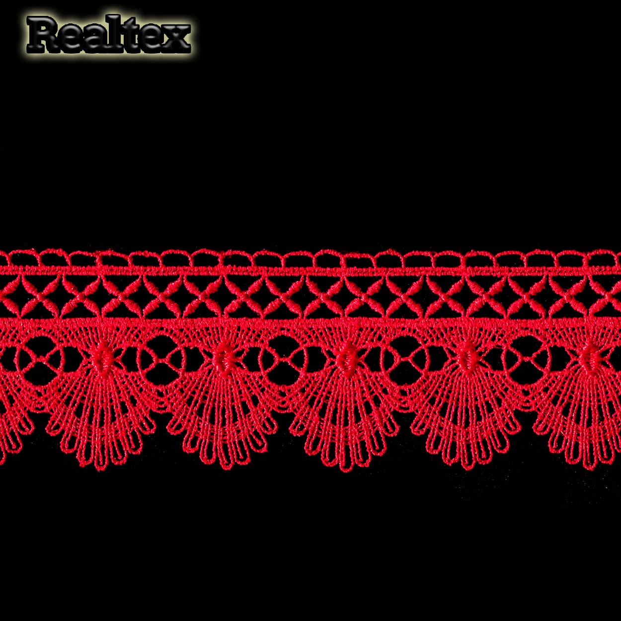 Кружево гипюр Realtex 51мм LF-351 цв.20 красный - изделие обладает оптимальным сочетанием цены и качества, приобрести которое можно оптом и в розницу с доставкой по всей России в интернет-магазине Realtex