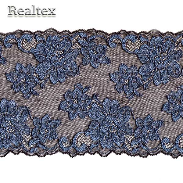 Кружево капроновое 165мм (Турция) H108 0322100 цв.черный/синий - изделие обладает оптимальным сочетанием цены и качества, приобрести которое можно оптом и в розницу с доставкой по всей России в интернет-магазине Realtex