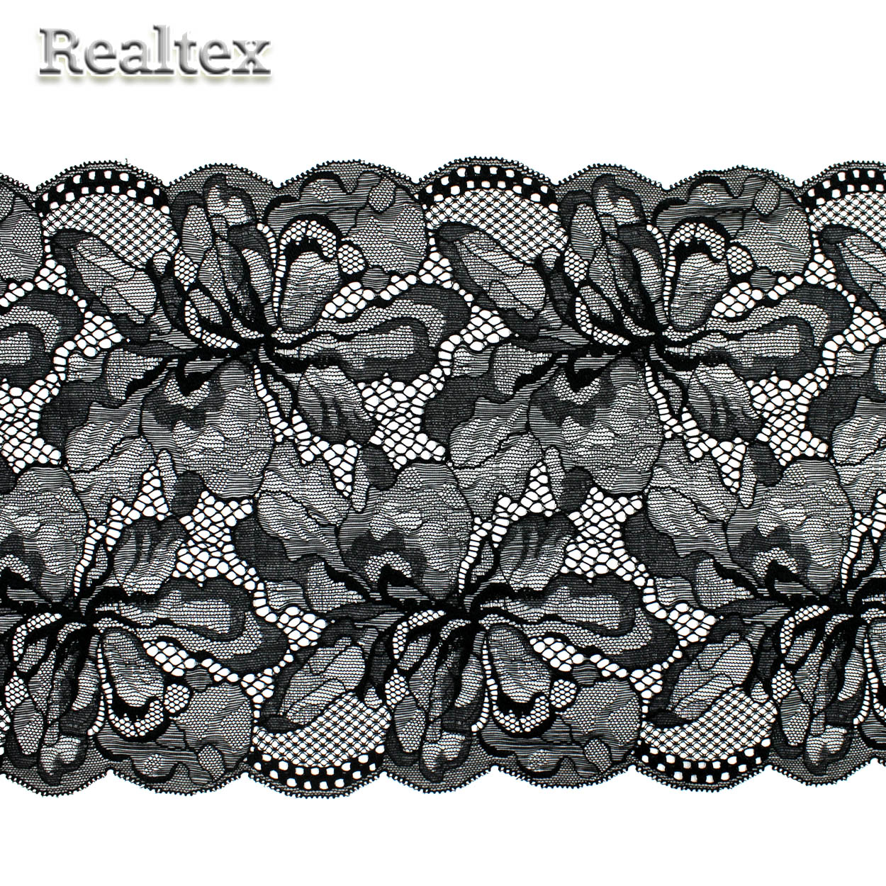 Кружево стрейч 205мм TBY 22.2 цв.чёрный - изделие обладает оптимальным сочетанием цены и качества, приобрести которое можно оптом и в розницу с доставкой по всей России в интернет-магазине Realtex