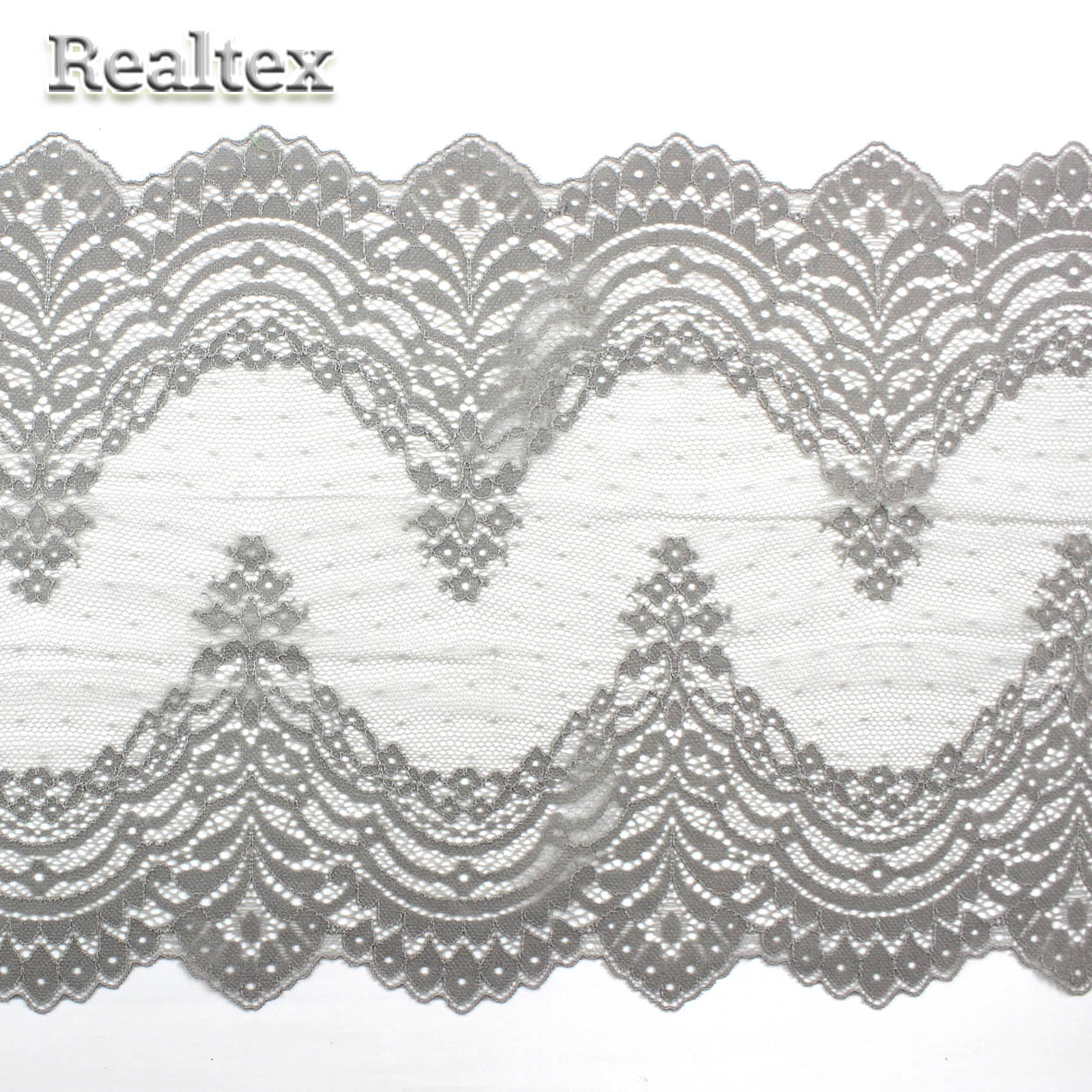 Кружево стрейч 230мм TBY 8036 цв.F310 серый - изделие обладает оптимальным сочетанием цены и качества, приобрести которое можно оптом и в розницу с доставкой по всей России в интернет-магазине Realtex