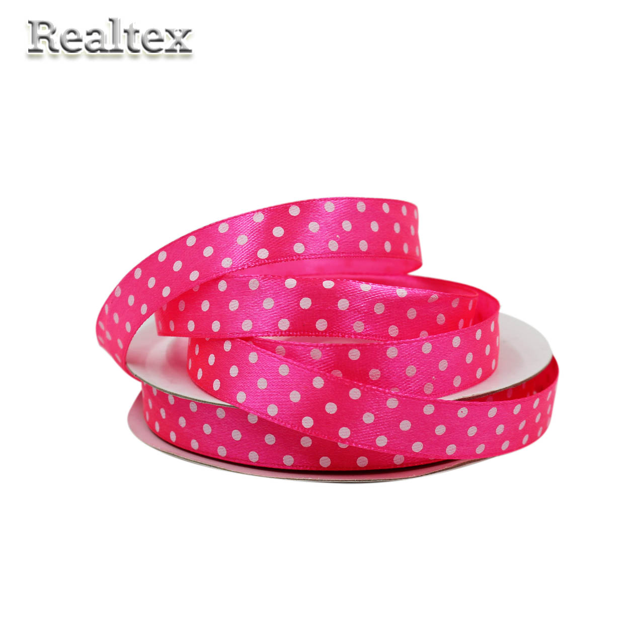 Лента атласная с рисунком 12мм Realtex "Горох" цв.3034 ярко-розовый - изделие обладает оптимальным сочетанием цены и качества, приобрести которое можно оптом и в розницу с доставкой по всей России в интернет-магазине Realtex