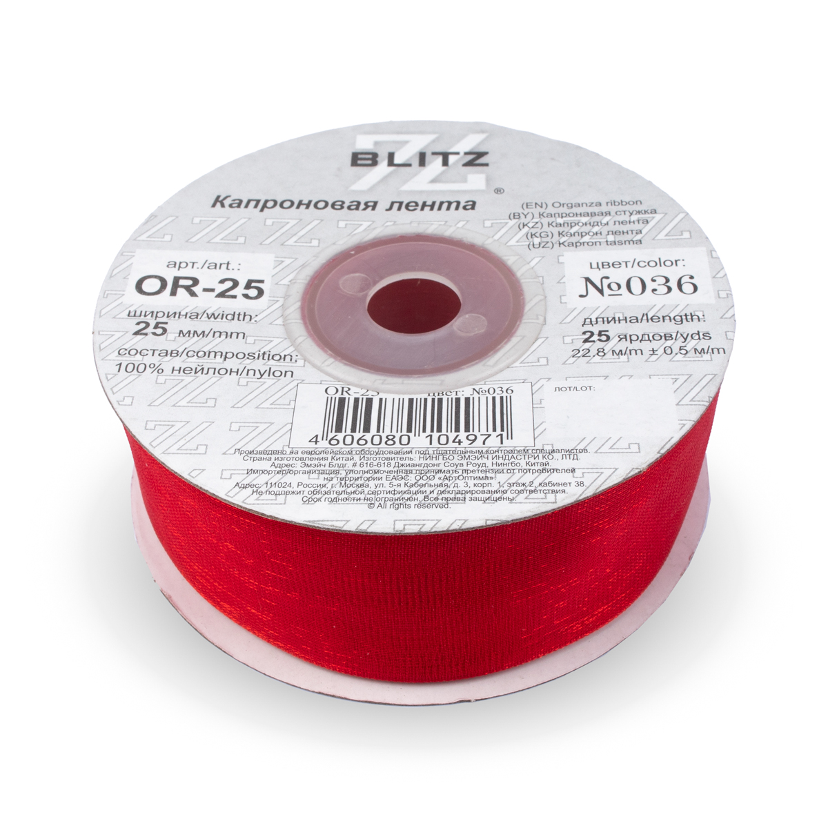Состав : 100% нейлонЛента капроновая 25мм OR-25 "Blitz" цв.036 красный - изделие обладает оптимальным сочетанием цены и качества, приобрести которое можно оптом и в розницу с доставкой по всей России в интернет-магазине Realtex
