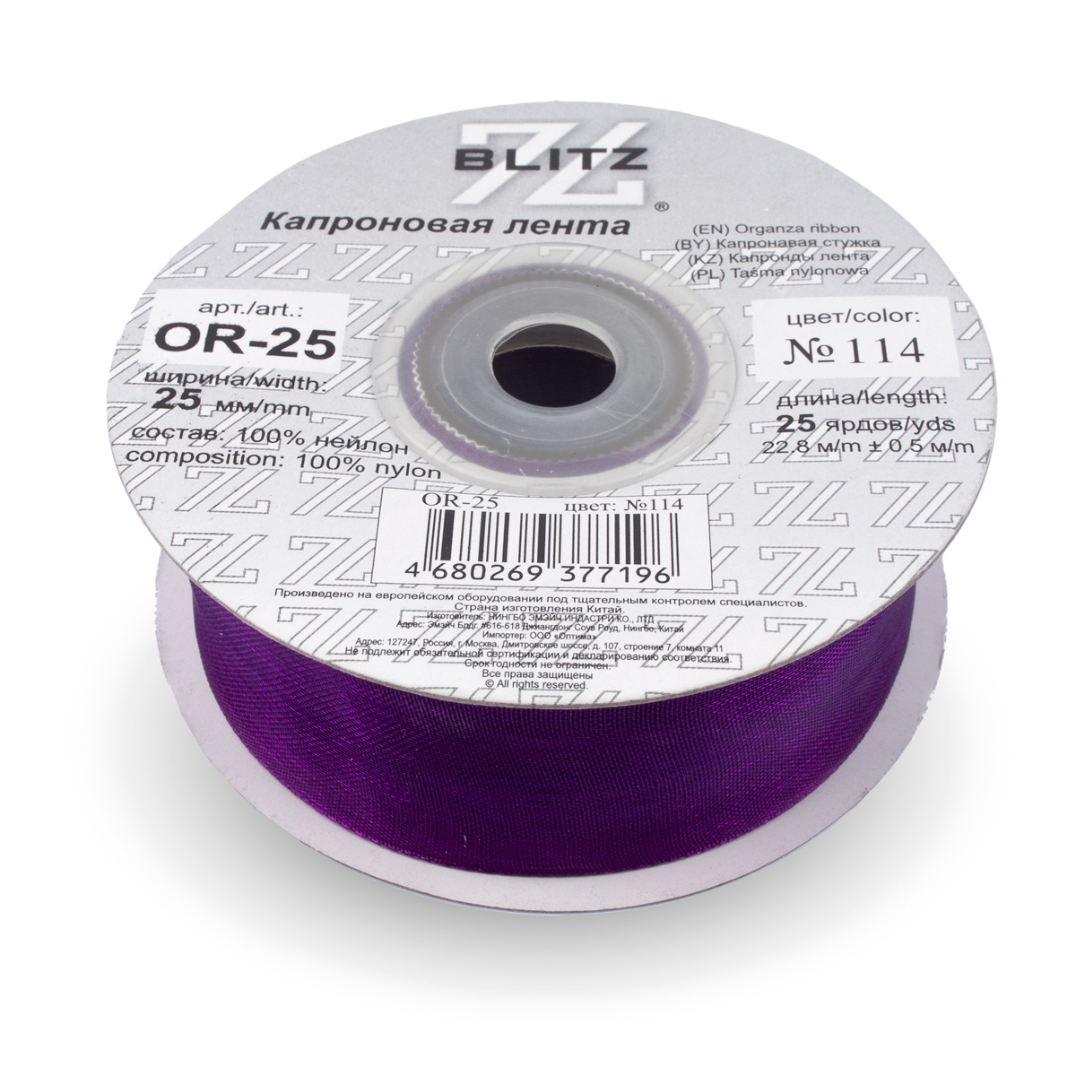 Состав : 100% нейлонЛента капроновая 25мм OR-25 "Blitz" цв.114 фиолетовый - изделие обладает оптимальным сочетанием цены и качества, приобрести которое можно оптом и в розницу с доставкой по всей России в интернет-магазине Realtex