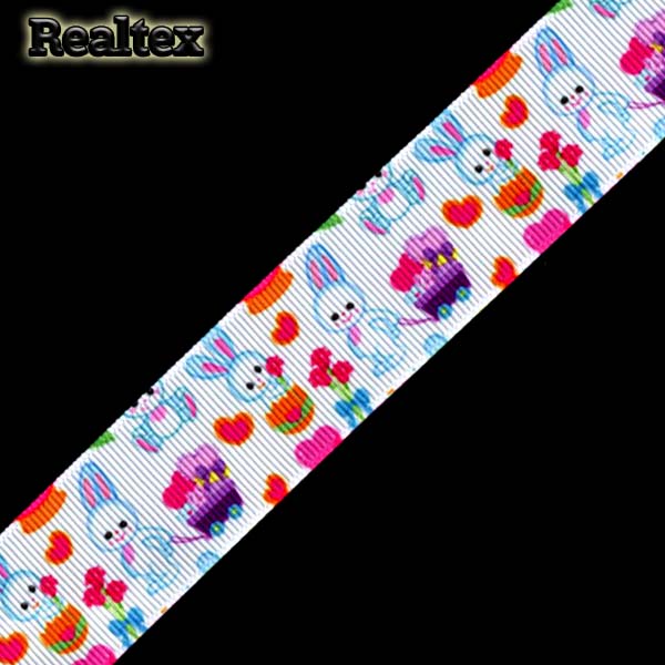 Лента репсовая с рисунком Реалтекс 25мм "Зайка с игрушкой №1" цв.белый - изделие обладает оптимальным сочетанием цены и качества, приобрести которое можно оптом и в розницу с доставкой по всей России в интернет-магазине Realtex