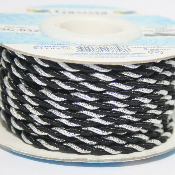 Шнур GC-032 витой 3мм "Гамма" цв.039/серебро черный - изделие обладает оптимальным сочетанием цены и качества, приобрести которое можно оптом и в розницу с доставкой по всей России в интернет-магазине Realtex