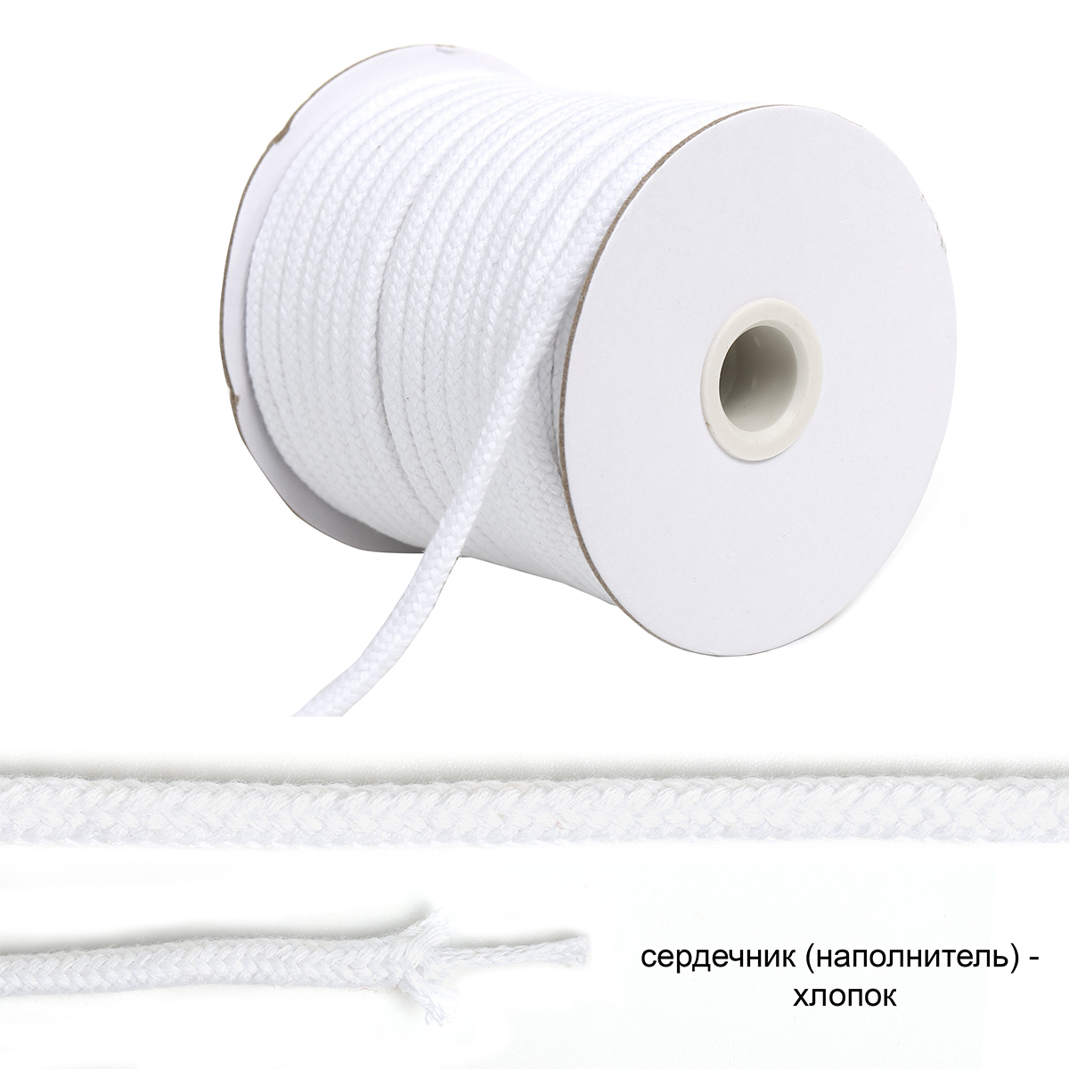 Внешняя трубка – оплётка; внутренняя – наполнитель, или сердечник. Оплётка производится из 100% хлопковой кручёной нити и задаёт цвет, прочность, узор и фактуру поверхности шнура. Сердечник плетётся из той же нити.Шнур ХБ 5,5мм с наполнителем TBY6209F101 цв.101 белый - изделие обладает оптимальным сочетанием цены и качества, приобрести которое можно оптом и в розницу с доставкой по всей России в интернет-магазине Realtex