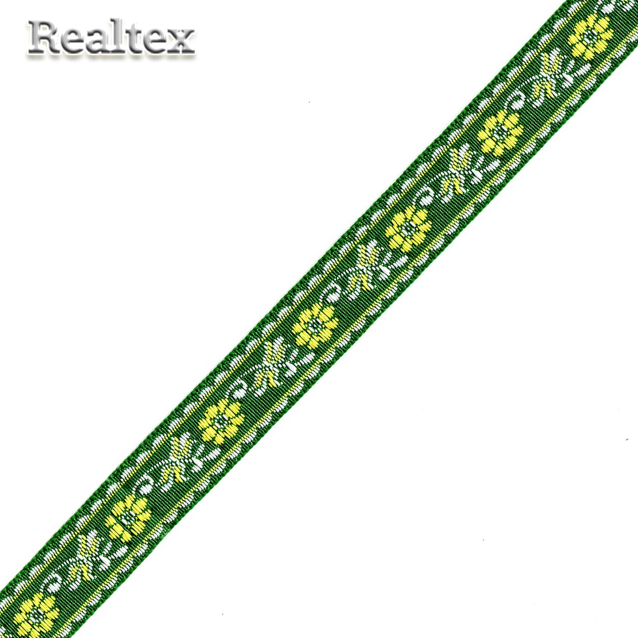 Тесьма жакардовая 18мм с1851г17 рис.8967 (50м) цв.зеленый/желтый - изделие обладает оптимальным сочетанием цены и качества, приобрести которое можно оптом и в розницу с доставкой по всей России в интернет-магазине Realtex