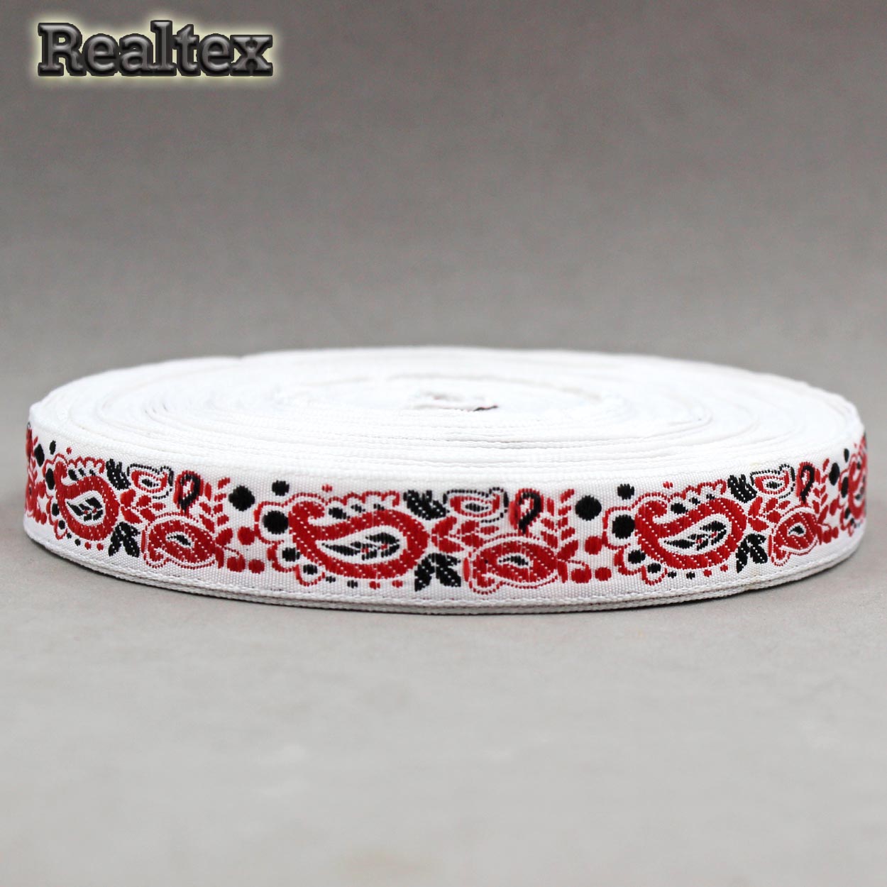 Тесьма жакардовая 18мм с1851г17 рис.9008 (25м) цв.белый/красный - изделие обладает оптимальным сочетанием цены и качества, приобрести которое можно оптом и в розницу с доставкой по всей России в интернет-магазине Realtex