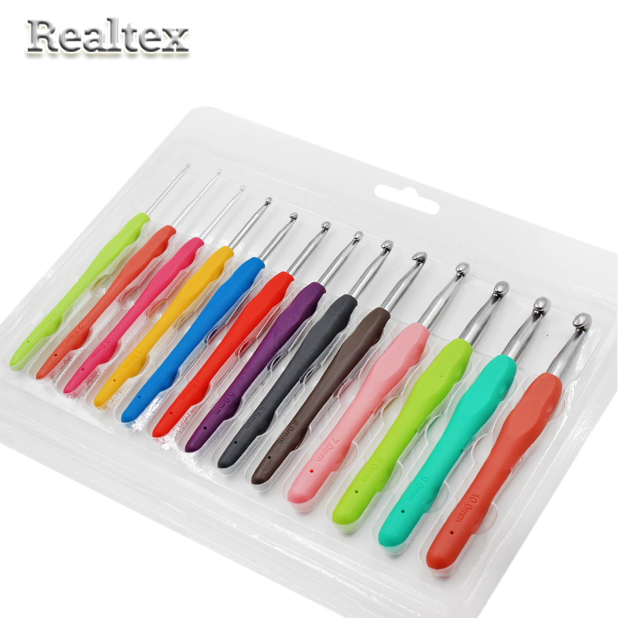 Набор крючков для вязания Realtex в блистере с каучуковой ручкой (13шт)