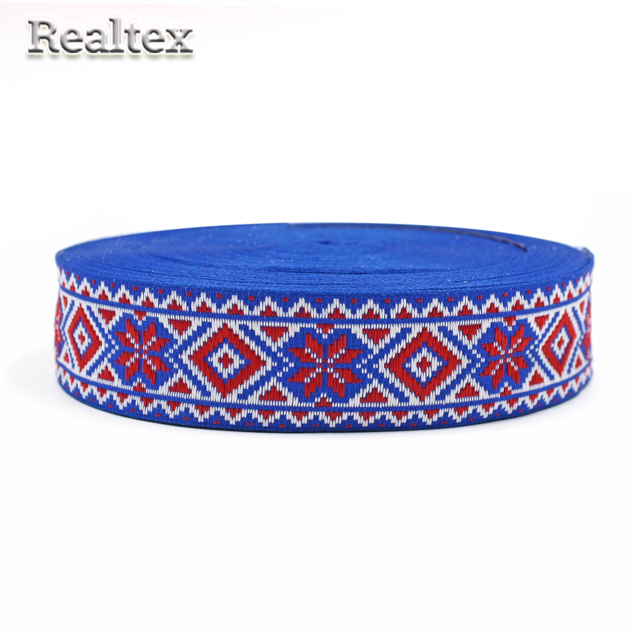 Тесьма жакардовая 32мм с1853г17 рис.9472 (25м) цв.электрик/красный