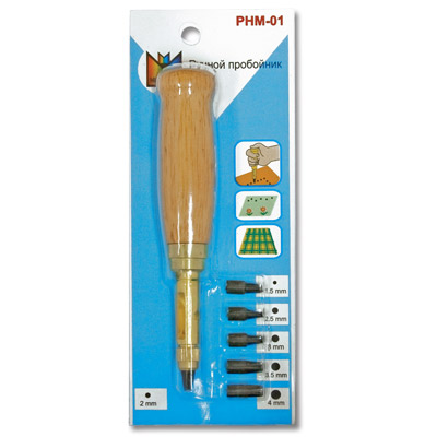 Пробойник PHM-01 не требует дополнительных инструментов, оснащен режущим механизмом. Удобен при рукоделии. Подходит для использования в быту. Насадки сделаны из прочного металла. Имеет удобную деревянную ручку. Диаметр насадок 1.5; 2; 2.5; 3; 3.5; 4 мм.