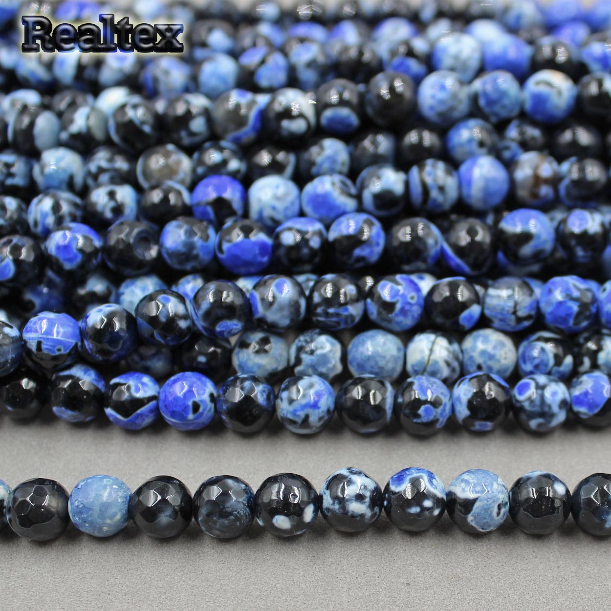 На 1 нити ~ 48 бусин.Бусины Реалтекс из натурального камня Агат шар граненый 8мм цв.черный/синий - изделие обладает оптимальным сочетанием цены и качества, приобрести которое можно оптом и в розницу с доставкой по всей России в интернет-магазине Realtex