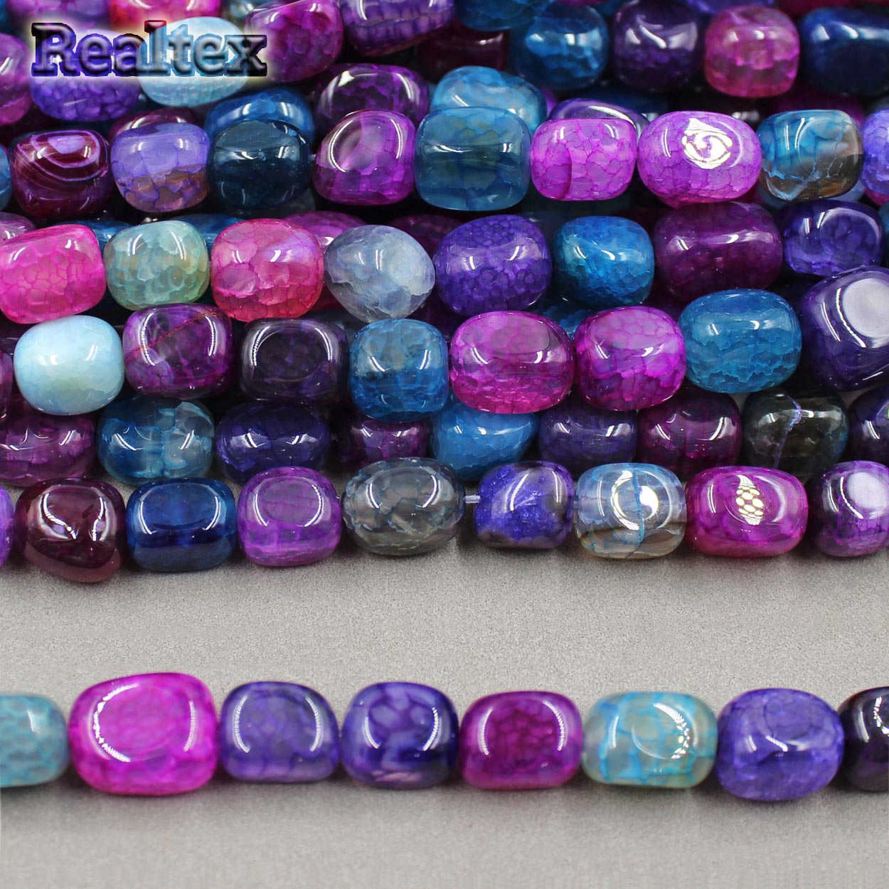 На 1 нити ~ 32 бусины.Бусины Realtex из натурального камня Агат галтованного 8*12мм дл.38см (32шт) цв.розово-сиреневый mix - изделие обладает оптимальным сочетанием цены и качества, приобрести которое можно оптом и в розницу с доставкой по всей России в интернет-магазине Realtex