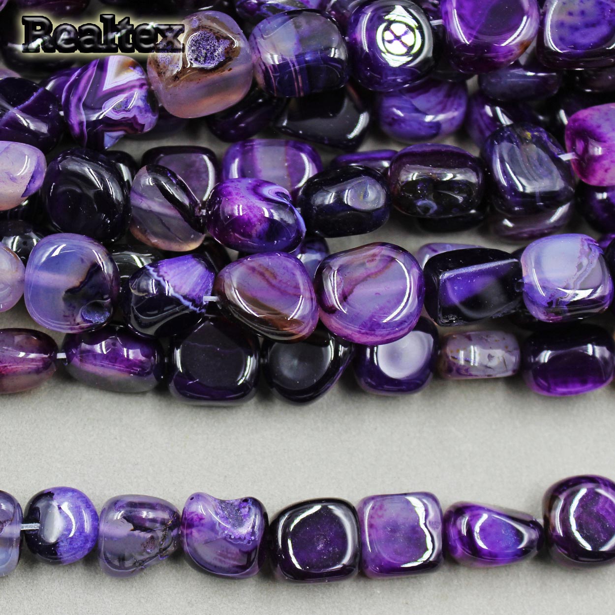 На 1 нити ~ 24 бусины.Бусины Realtex из натурального камня Агат галтованного 9*15мм дл.37см (24шт) цв.сиреневый mix - изделие обладает оптимальным сочетанием цены и качества, приобрести которое можно оптом и в розницу с доставкой по всей России в интернет-магазине Realtex