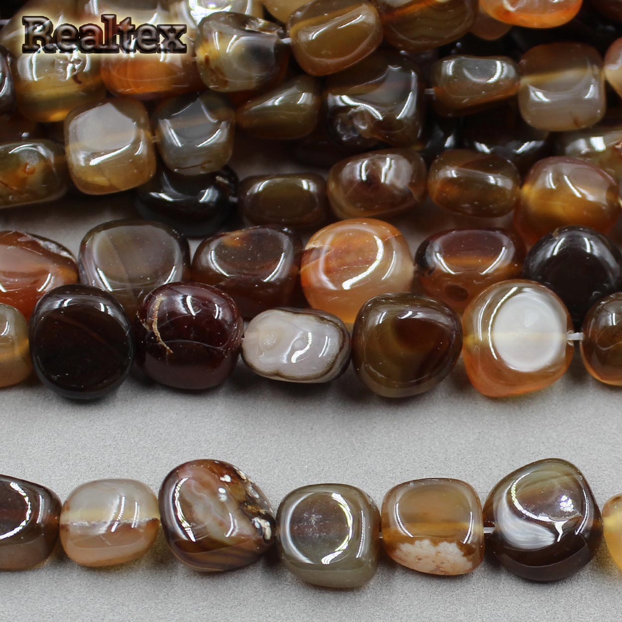 - Бусины Realtex из натурального камня Агат галтованного 9*15мм дл.37см (24шт) цв.светло-коричневый mix