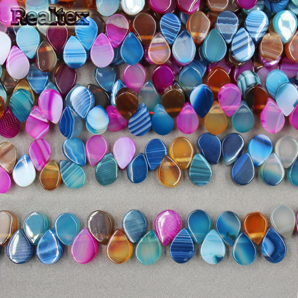 На 1 нити ~ 105 бусин.Бусины Realtex из натурального камня Агат капля 3*5*8мм дл.39см (105шт) цв.mix - изделие обладает оптимальным сочетанием цены и качества, приобрести которое можно оптом и в розницу с доставкой по всей России в интернет-магазине Realtex