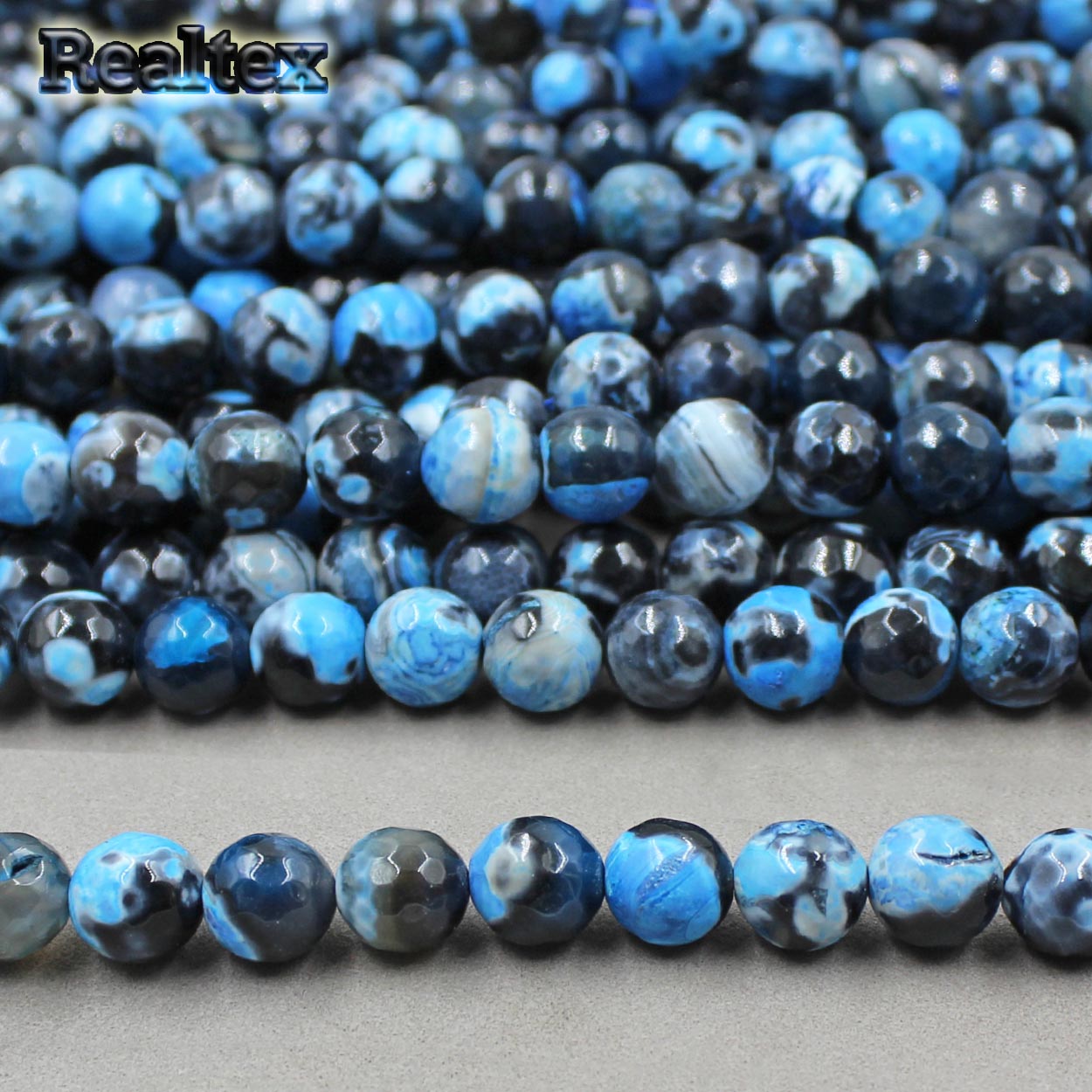 На 1 нити ~ 37 бусин.Бусины Realtex из натурального камня Агат шар граненый 10мм цв.черный/голубой - изделие обладает оптимальным сочетанием цены и качества, приобрести которое можно оптом и в розницу с доставкой по всей России в интернет-магазине Realtex