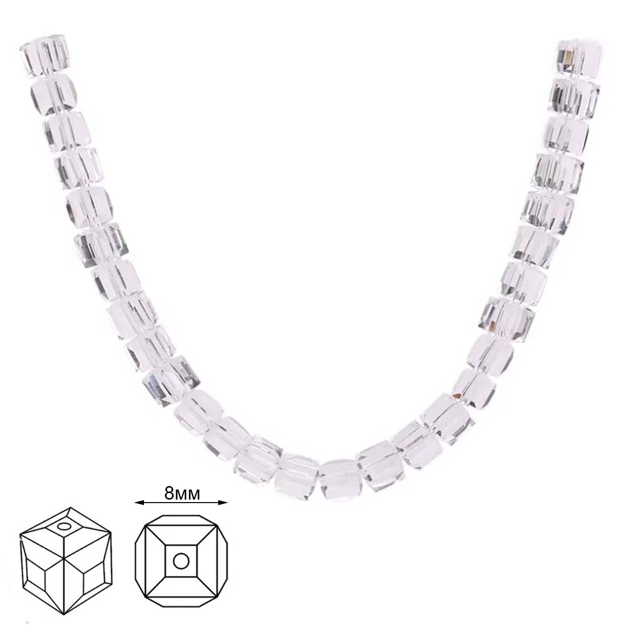 - Бусины Реалтекс стеклянные 8*8мм "Квадрат" на нитях цв.01 прозрачный