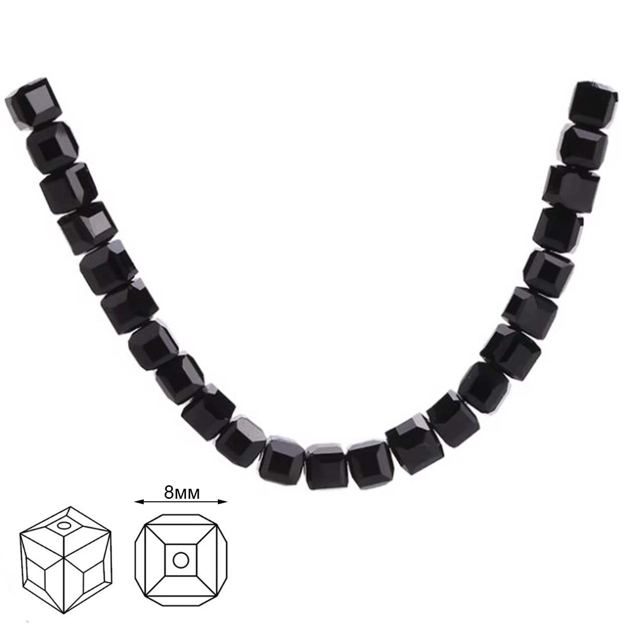 Перейти в разделБусины Реалтекс стеклянные 8*8мм "Квадрат" на нитях цв.02 черный