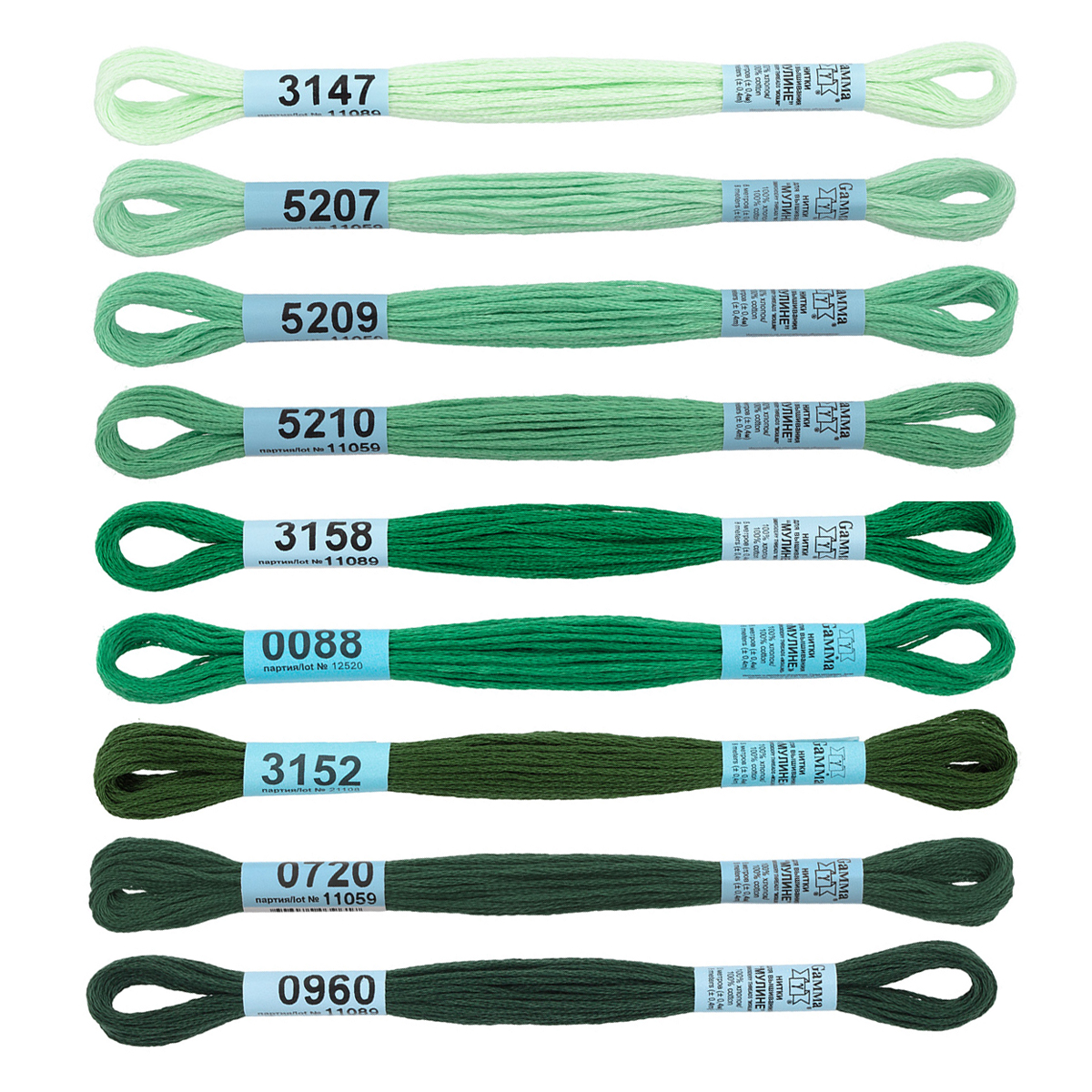 - Набор мулине "ГАММА" №10 (9шт*8м) цв.зелёный