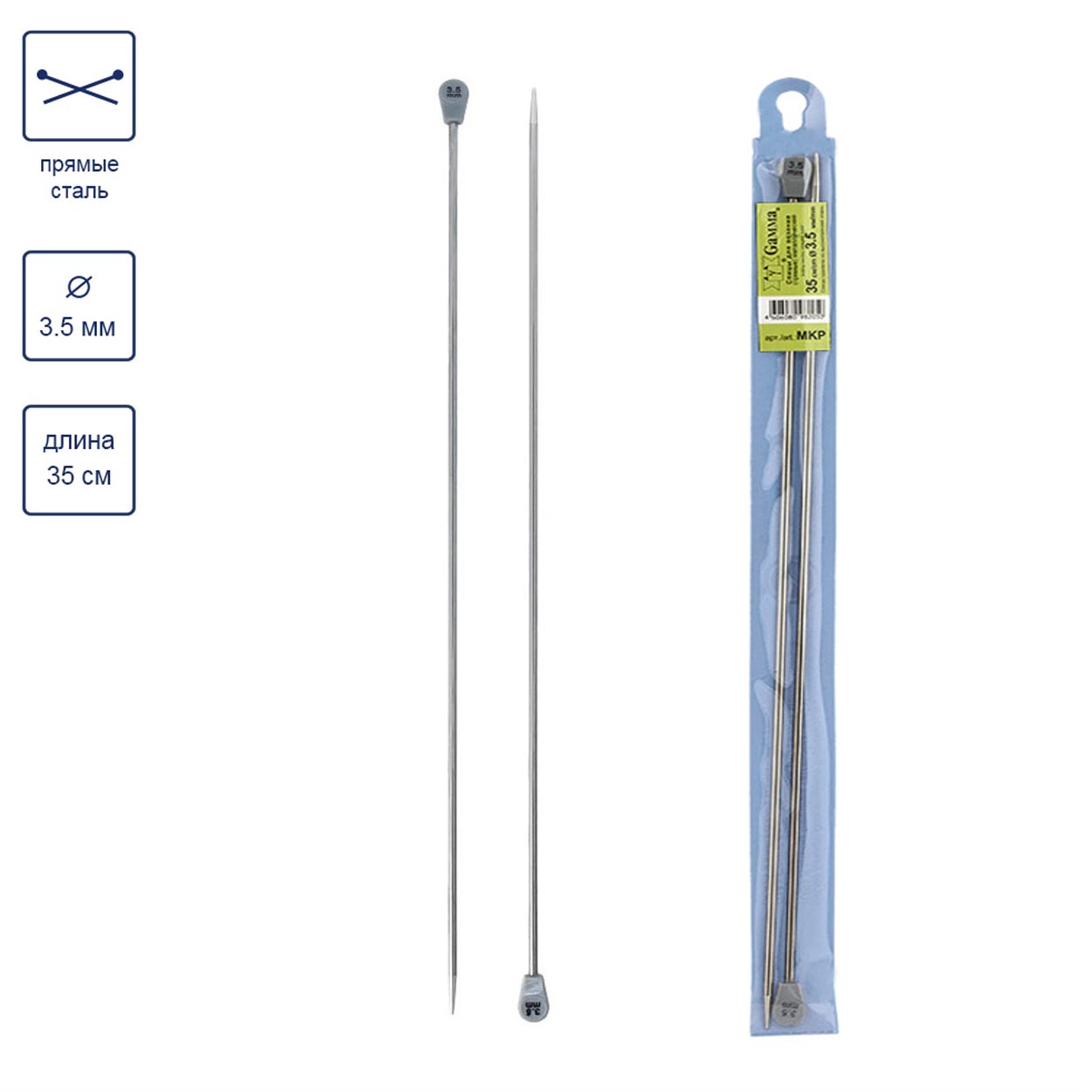 - Спицы прямые металл "Gamma" MKP 35см №3,5мм (2шт*5уп)