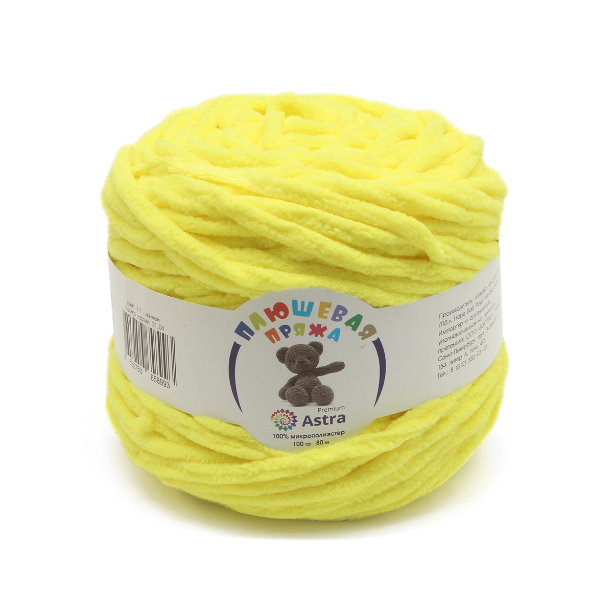 - Пряжа Астра "Плюшевая" (100%полиэстер) (2*100гр*80м) цв.311 жёлтый
