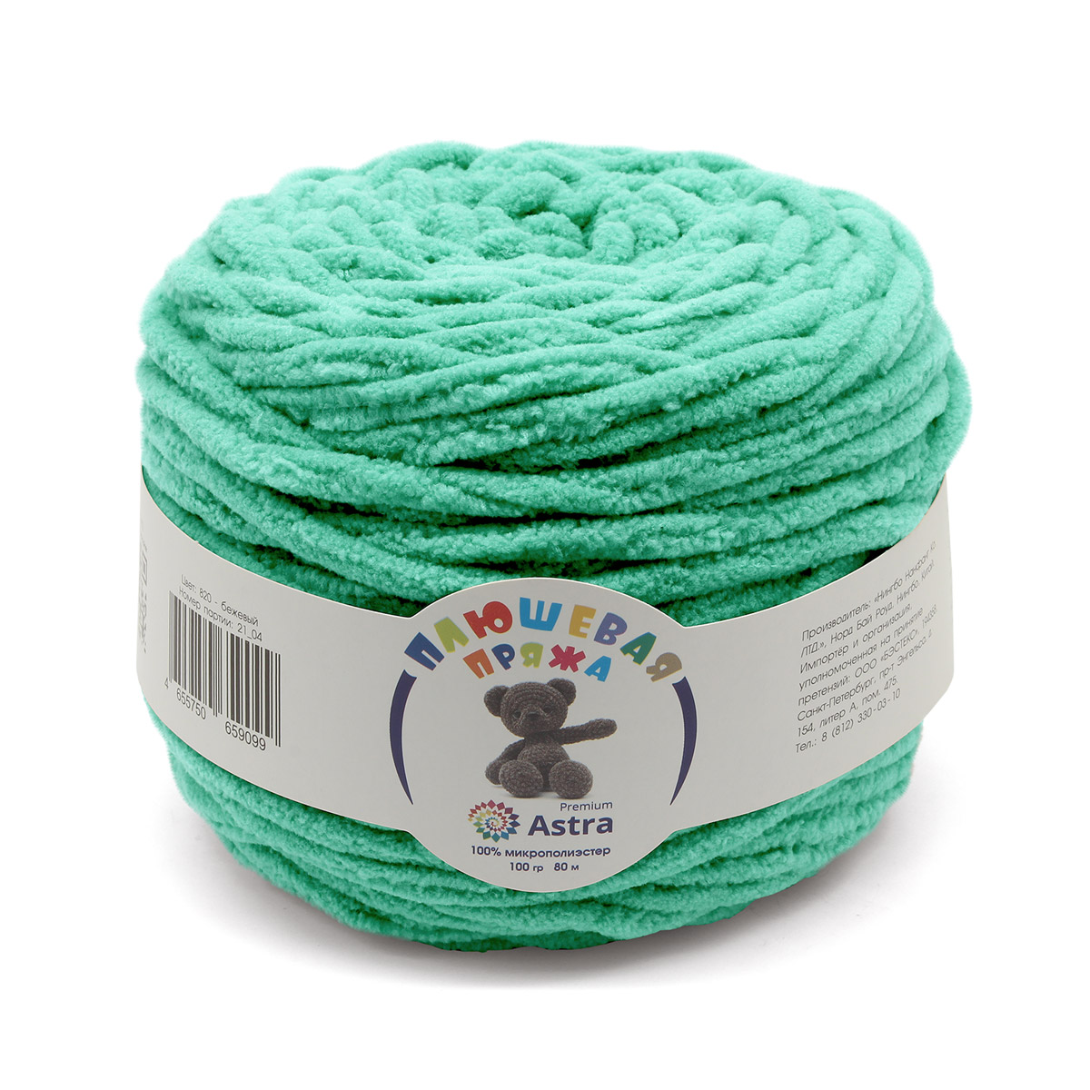 - Пряжа Астра "Плюшевая" (100%полиэстер) (2*100гр*80м) цв.402 ледяная мята