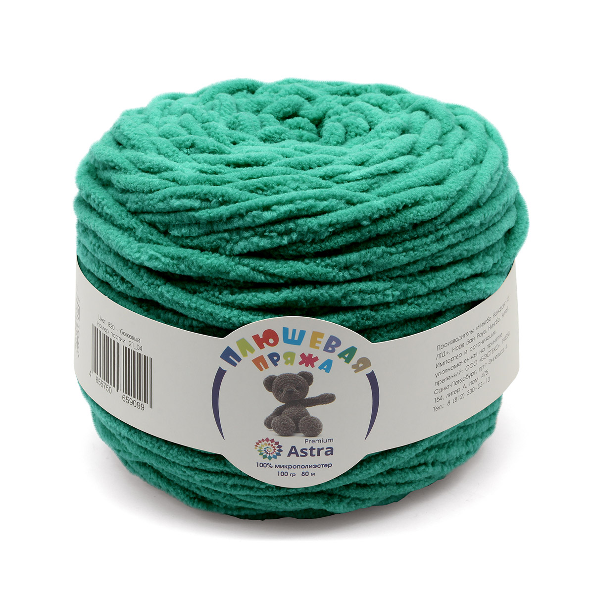 Перейти в разделПряжа Астра "Плюшевая" (100%полиэстер) (2*100гр*80м) цв.412 изумрудно-зелёный