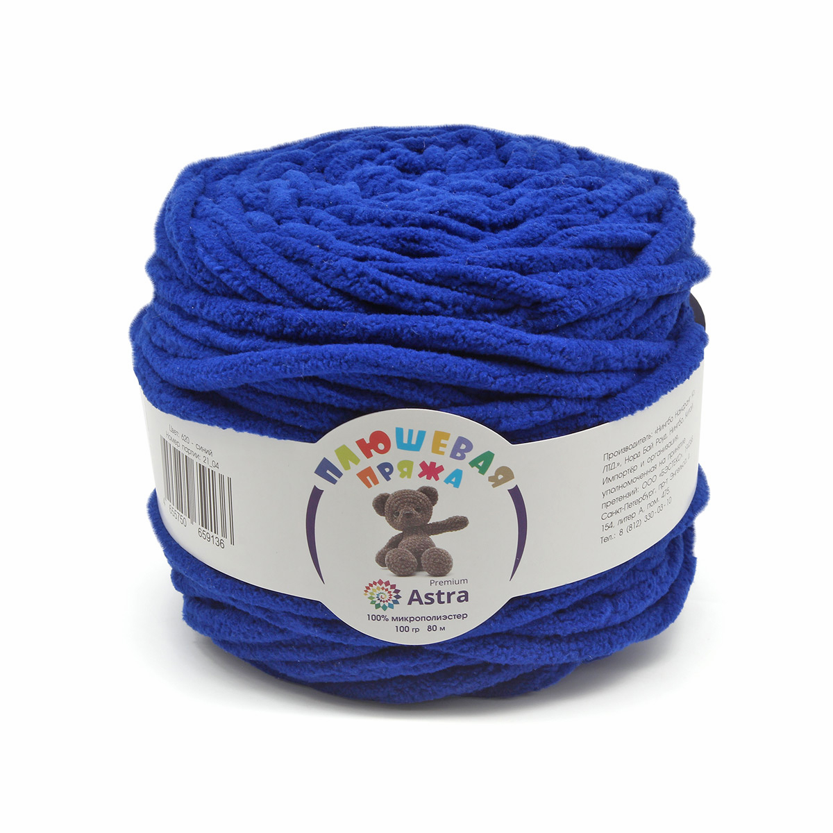 Перейти в разделПряжа Астра "Плюшевая" (100%полиэстер) (2*100гр*80м) цв.620 синий