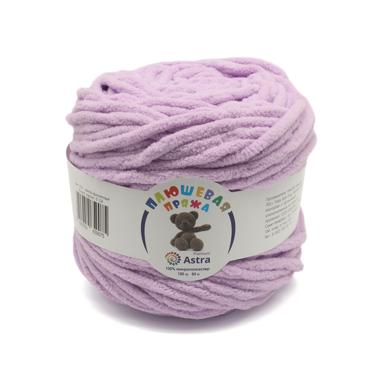 - Пряжа Астра "Плюшевая" (100%полиэстер) (2*100гр*80м) цв.720 светло-фиолетовый