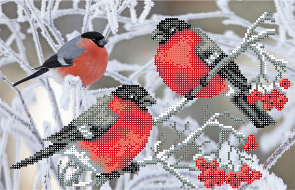 Перейти в разделРисунок на шелке МП №4027 "Снегири" 28х34см