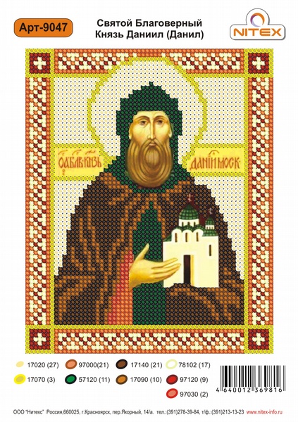 Рисунок на канве бисером Нитекс "Св.Благоверный Князь Даниил (Данил)" №9047 - изделие обладает оптимальным сочетанием цены и качества, приобрести которое можно оптом и в розницу с доставкой по всей России в интернет-магазине Realtex
