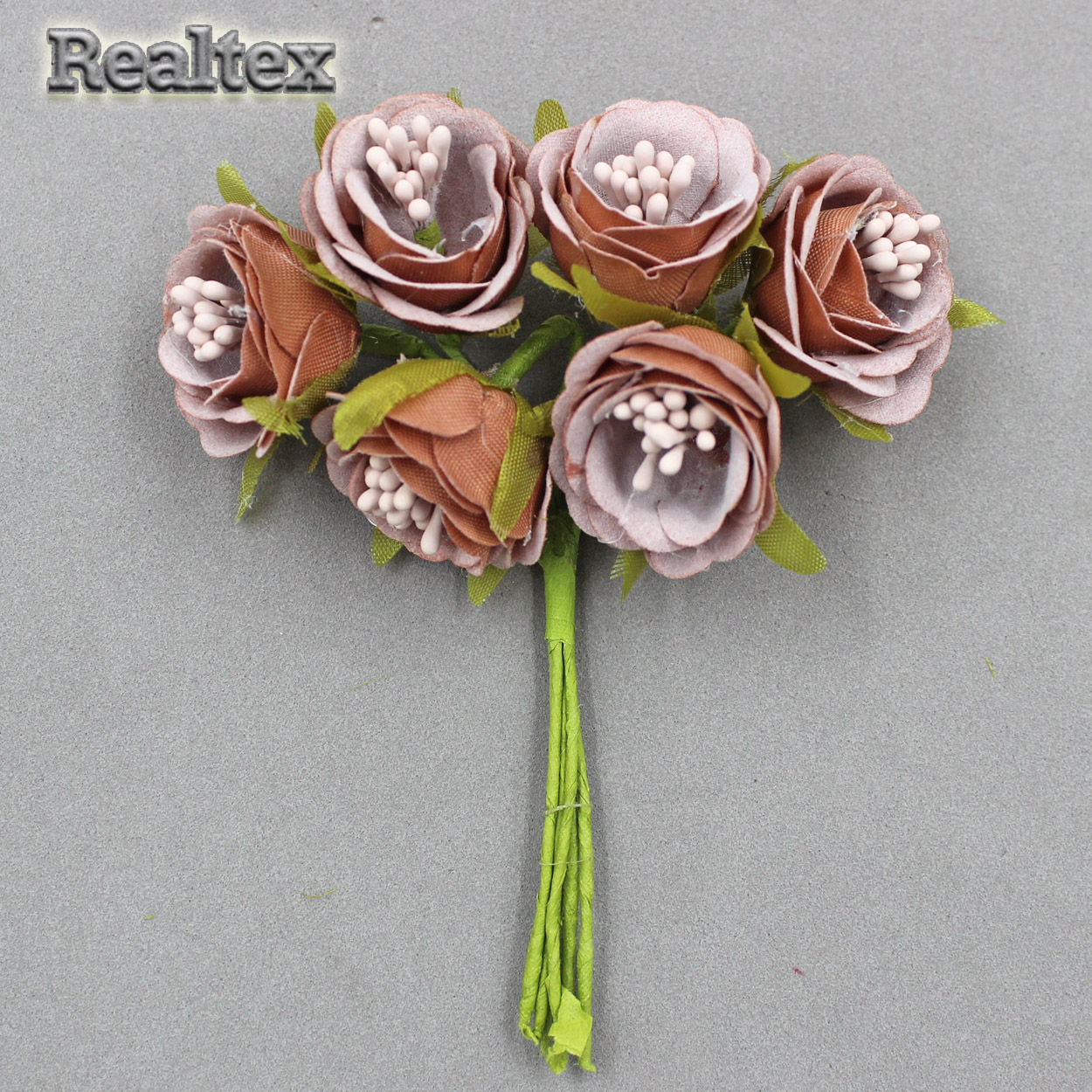 - декоративный букетик realtex "розочка пионовидная" tf-1923 35*115мм (1 букет.* 6шт) цв.светло-коричневый купить с доставкой