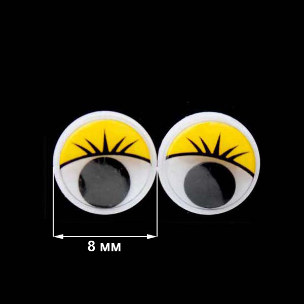 Глазки Realtex круглые бегающие с ресничками 8мм цв.желтый