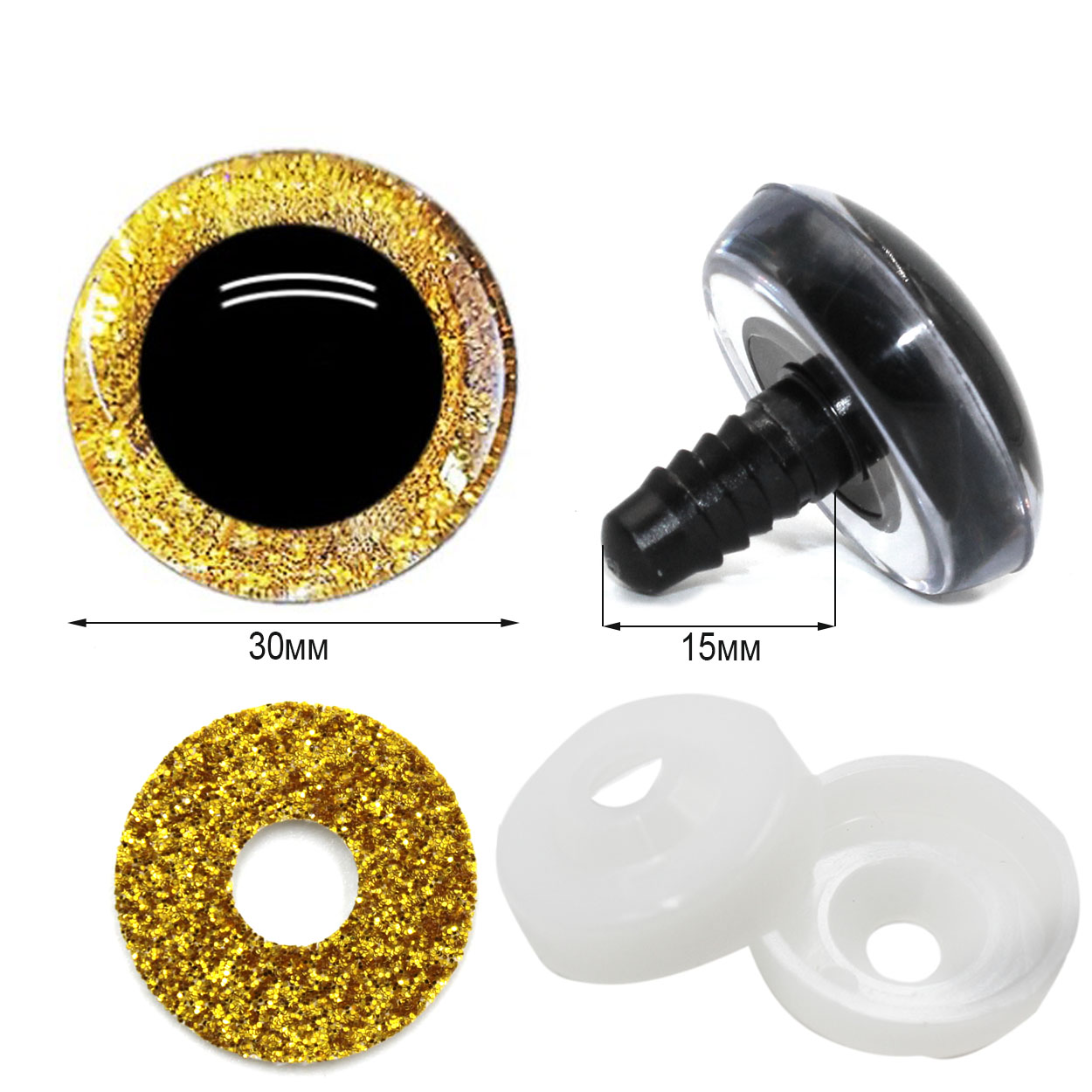 - глазки realtex круглые винтовые r-2 акриловые с глиттерной подложкой 30мм с крепежом (10шт) цв.золотистый купить с доставкой