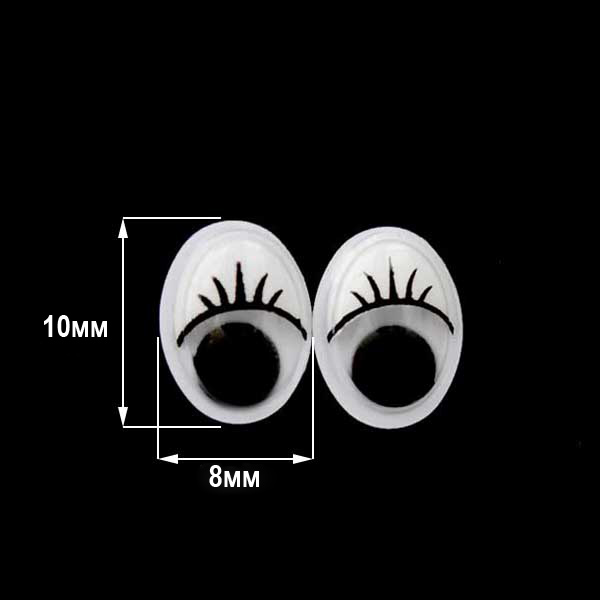 Перейти в разделГлазки Realtex овальные бегающие с ресничками 8*10мм цв.белый/черный